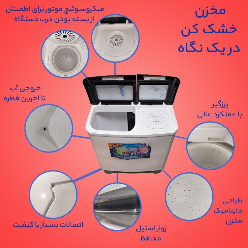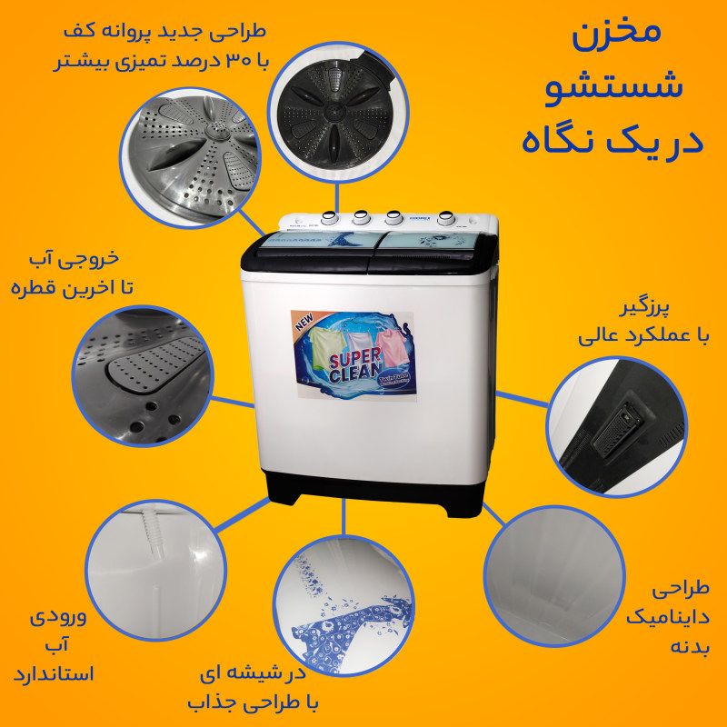 | محتوا | یک لباسشویی خوشقیمت ، کاربردی و با قدرت تمیزکنندگی بالا. لباسشوییهای دوقلو بخاطر کارکرد راحت و قیمت مناسب مورد توجه بسیاری از مصرفکنندگان قرار گرفته است. شما داخل لباسشوییهای دوقلو میتوانید انواع لباس، پارچه ، پتو مسافرتی ، ملحفه و ... را شسته و بخاطر ساختار گردش پروانه از کف لباسهای تمیزتری نسبت به لباسشوییهای اتوماتیک داشته باشید. برند لوازم خانگی کوپکس از برندهای مطرح صادراتی ایران است. که محصولات با کیفیتی تولید و علاوه بر بازار ایران به کشورهای حوزه اوراسیا و خاورمیانه صادر میکند. لباسشویی دوقلو کوپکس مدل 1112 ظرفیت شستوشو 12 کیلو لباس را داشته و دارای نشان 10 رقمی استاندارد ایران است. همینطور این لباسشویی دارای خدمات نصب رایگان در محل میباشد. لباسشویی دوقلو کوپکس دارای سه موتور مجزا شامل یک موتور شستوشو یک موتور خشک کن و یک موتور تخلیه آب است. همینطور سه ولوم روی پنل دستگاه به شما قابلیت تنظیم زمان شستوشو، زمان خشک کن و ولوم استفاده از موتور تخلیه را میدهد. توجه داشته باشید که درب این لباسشویی دارای میکروسوئیچ بوده و در صورت بسته بودن دربها، موتورها فعال میشوند. این لباسشویی جدیدترین طراحی پروانه کف را دارا بوده که 30 درصد تمیزی بیشتر برای شما به ارمغان خواهد آورد. بدنه لباسشویی مقاوم در برابر آب و ضربه بوده و کاربرد طولانی و بدون مشکل را به شما تصمین خواهد داد. امیدواریم از خرید این لباسشویی لذت ببرید. | لباسشویی اسنوا سری واش این واش مدل SWM-84616 یکی از جدید ترین ماشین لباسشویی های این برند میباشد، که به دلیل تجهیزات مدرن خود بسیار مورد پسند خانواده ها قرار گرفته است. ماشین لباسشویی مدل 84616 یکی از بهترین مدل های ماشین لباسشویی برند اسنواست که علاوه برقیمت مناسب و ارزان، دارای امکانات خوبی میباشد. تعداد 14 برنامه پیشفرض برای لباسشویی مدل SWM-84616 در نظر گرفته شده است که شامل برنامه شستشوی لباسهای جین، اسپری مستقیم آب و مواد شوینده بر روی البسه، انجام عملیات شستشوی لباسها با حداقل انرژی و … می باشد. همچنین این دستگاه با بهرهگیری از توان موتور قدرتمند دیجیتال اینورتر با سرعت 1400 دور در دقیقه و ظرفیت دیگ هشت کیلوگرم می تواند به راحتی نیازهای شست و شوی لباس یک خانواده با جمعیت متوسط را برطرف کند و این در حالی است که رتبه انرژی +++A در این دستگاه باعث کاهش 60 درصدی مصرف انرژی شده است و دیگر جای نگرانی برای مصرف انرژی وجود ندارد. بزرگترین مزیت این لباسشویی وجود درب مکمل واش این واش برای اضافه نمودن لباس و البسه در حین شست و شو است. | مروزه با توجه به ضرورت وجود ماشینهای لباسشویی در خانهها، انواع مختلفی از آنها به بازار عرضه میشود که هر کدام دارای قابلیتهای خاصی هستند. ماشین لباسشویی مدل WE82-AWI/ASI یک محصول با کیفیت از برند ایکس ویژن است. این ماشین لباسشویی با یک طراحی شکیل و مدرن دارای مخزنی با گنجایش 8 کیلوگرم است که این میزان میتواند به راحتی نیازهای شستوشوی لباس یک خانواده با جمعیت متوسط را برطرف کند. شرکت ایکس ویژن برای ماشین لباسشویی مدل WE82-AWI/ASI یک موتور Inverter درنظر گرفته که سرعت چرخش 1200 درو در دقیقه را فراهم میکند.امکان اضافه کردن لباس در حین شستشو، کنترل میزان کف و قابلیت شستشو در چندین دمای متفاوت از جمله امکانات موجود در این مدل از ماشین لباسشویی است. این مدل لیست متنوعی از برنامهها را دارد که متناسب با جنس لباسها قابل انتخاب هستند. این مدل با 16 برنامه شستشو به یک گزینه ایدهال در بازار تبدیل شده است. | ماشین لباسشویی ازجمله اقلامی است که در هر خانهای نیاز میشود و ما ایرانیها عادت به شستوشوی تمام لباسها و ملحفه، پتو و زیرانداز را در ماشین لباسشویی داریم. از این رو ظرفیت دیگ 8 کیلویی به بالا در بین ما بیشترین مصرف را دارد. ماشین لباسشویی مدل GWM-L87 از محصولات جی پلاس است که با ظرفیت 8 کیلوگرم طراحی شده است. این ماشین لباسشویی دارای 14 برنامه اصلی و 6 برنامه تکمیلی شستشو ازجمله شستشوی سریع د